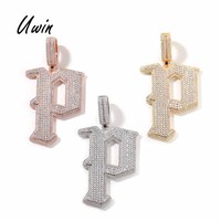 จี้เริ่มต้นมีสไตล์ที่มีตัวอักษร Baguette Hoop สร้อยคอ P สไตล์อินเทรนด์ตัวหนาผู้หญิงแร็ปเปอร์พร้อมส่งเครื่องประดับ