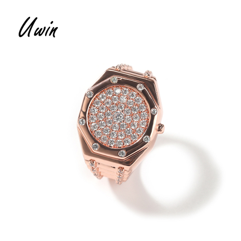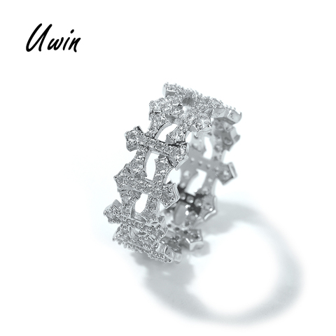 Uwin คลัสเตอร์แหวนรูปมงกุฎประดับอัญมณีสวยงามแหวนแร็ปเปอร์ชั้นคริสเตียนสวยงามไร้กาลเวลาดีไซน์หรูหราสวมใส่ทุกวัน